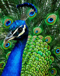 Driving home today I saw two real live peacocks crossing the road. They were gorgeous! Luckily I had my camera in my purse, so I pulled over and creapt slowly and quietly from the car. Peacock one was on the opposite side of the fence by now and peacock two was about 3 yards from me. Unfortunately, the combination of my approach and a loud oncoming delivery truck startled the peacock nearest me, causing him to leap atop the fence. Before today I'd only seen them at the zoo when I was a kid. Their vibrant colors amazed me. Their beauty captivates.